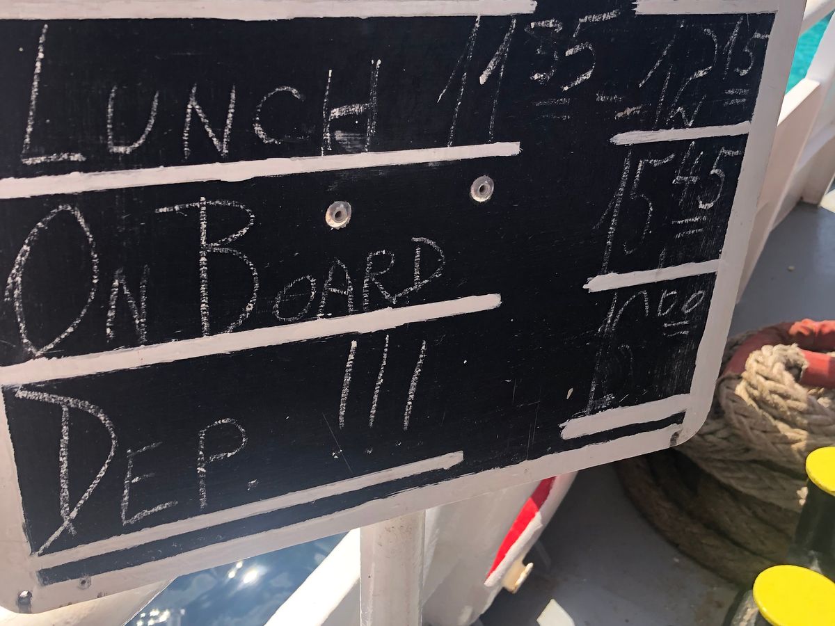 å»¶ãããã³ããå³¶ã«å°çããã®ã¯12:50ããããšçéçŽ4æéâŠãäžè¹ããéã«ãã¿ã©ããã®æšªã«æ»ãæéãšåºèªæéãæžãããããŒãããããŸãããæ¥ã«ãã£ãŠæéãç°ãªãããã§ãã®ã§ãã§ãã¯ããŠãããšè¯ããšæããŸããã©ã³ãã¯13:15ã14:30ãšèšãããè
