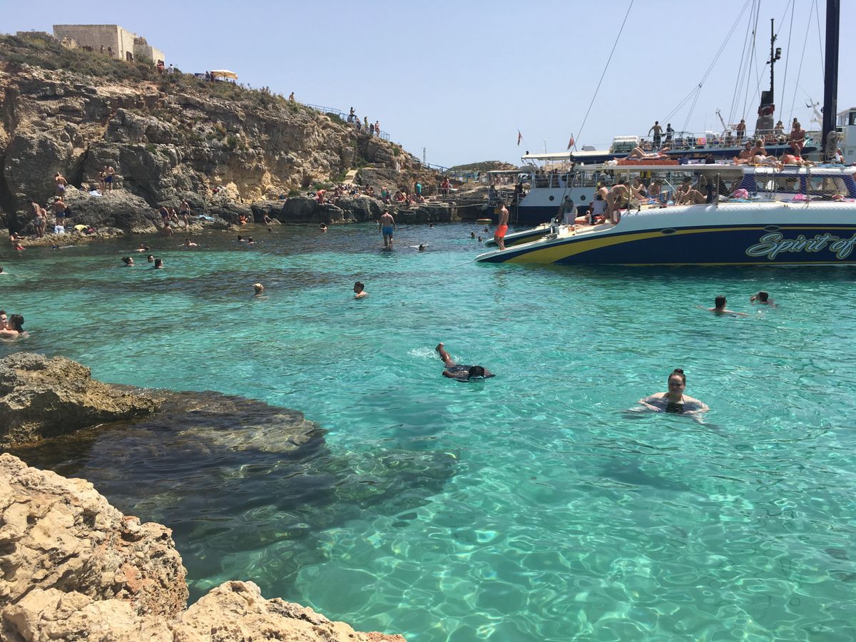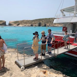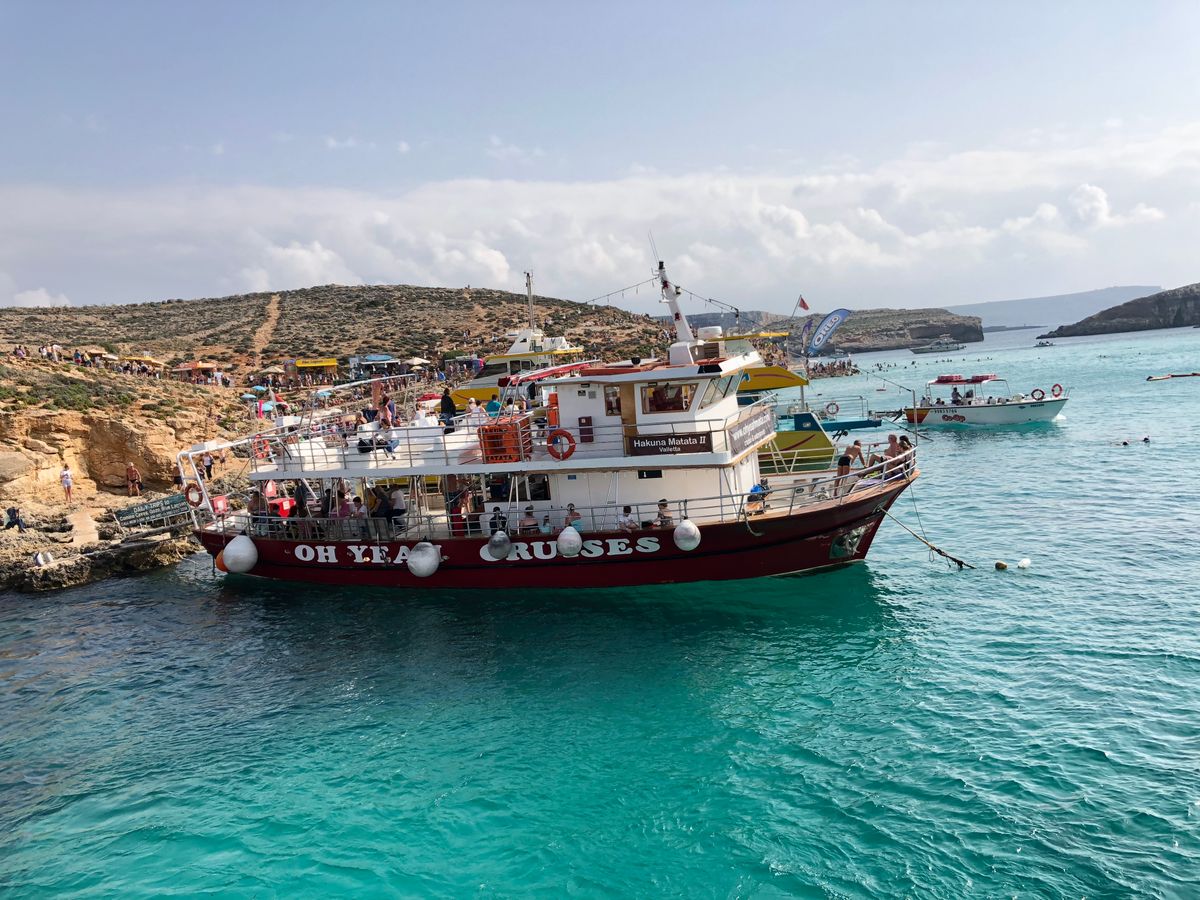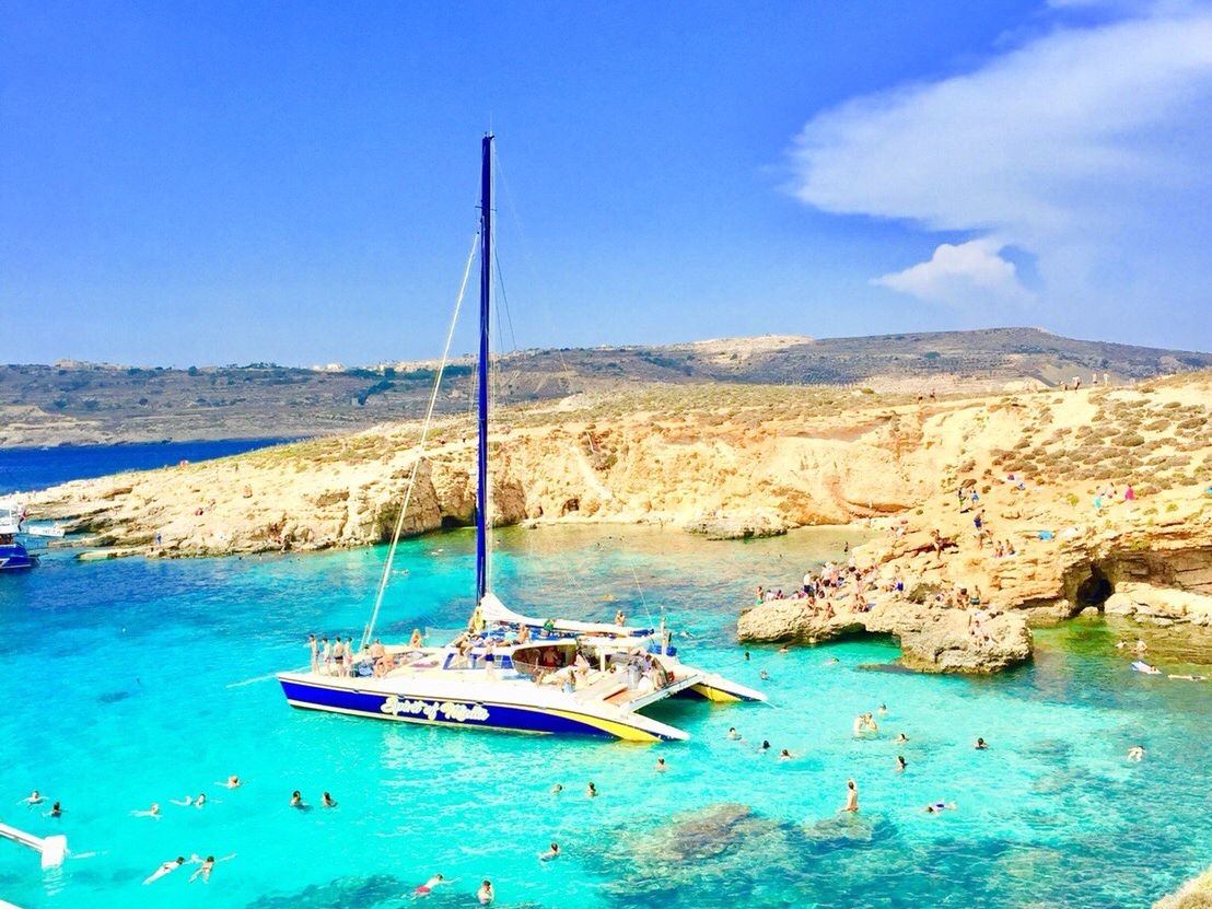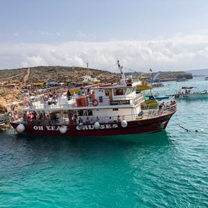 スリーマハーバーにはキャプテンモーガンのツアースタッフがたくさんいたので、その人たちにバウチャーを見せながら待ち合わせ場所に辿り着けました。船内はソフトドリンクからアルコール(ビールとワイン)まで飲み放題でした。決してすごい綺麗ではないですがトイレもあるので安心です。座席も十分にあり、快適でした。有料ですが、サンドイッチも購入可能です。まずはコゾ島に向かいます。キャプテンモーガンのスタッフはとてもフレンドリーで優しかったです。コゾ島に着くと、待っている観光バスに乗って名所を回るのですが、このバスが最悪でした。中は汚いし、名所で降ろしてくれるのですが、集合時間だけ告げられて、そのままどこかへ去っていってしまったので少し不安になりました。集合時間に戻っても、なかなかバスが現れません。しばらく待たされるとバスが帰ってきたので安心しましたが、新たなツアー客を乗せて帰ってきたので、ここで初めて巡回しているバスだったのかと気がつきました。他のツアー客はバスに荷物を置いて観光していた人もいたので、バスが帰ってこなくてすごく不安そうでした。もちろん貴重品は入っていないでしょうが、貸切でないのであれば伝えておいて欲しかったかなと思い、それだけが少し残念です。一つ一つの滞在時間も短いので、お昼を食べる時間はないと考えたほうがいいです。何か持参するか、カフェなどで軽く買って食べるのをお勧めします。コゾ島の街は素晴らしかったです。その後はまた船でコミノ島へ向かいます。ブルーラグーンに近づくにつれて海の透明度が高まっていき、一気にテンションも上がりました。ブルーラグーンはすごく混み合っていましたが、景色は本当に最高!ここでも時間がないので、とても慌ただしいですが、海はとっても綺麗なので楽しめました。ゆっくり海水浴を楽しみたい場合はブルーラグーンのみのツアーをお勧めしますが、もともと安いツアーだったので、それを考えると満足かなと思います。