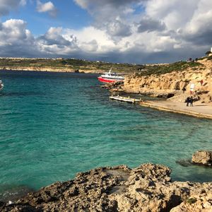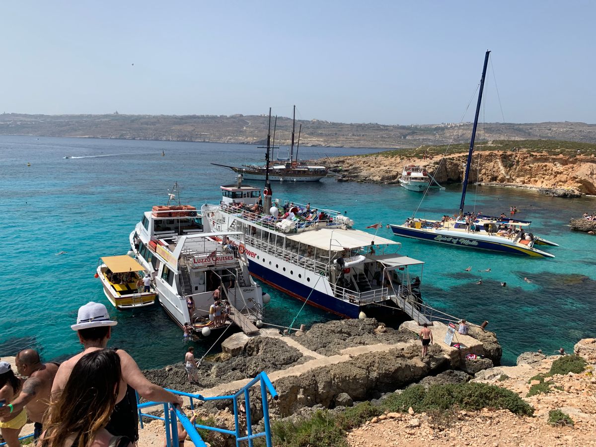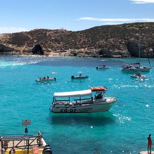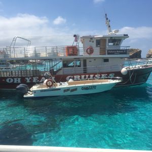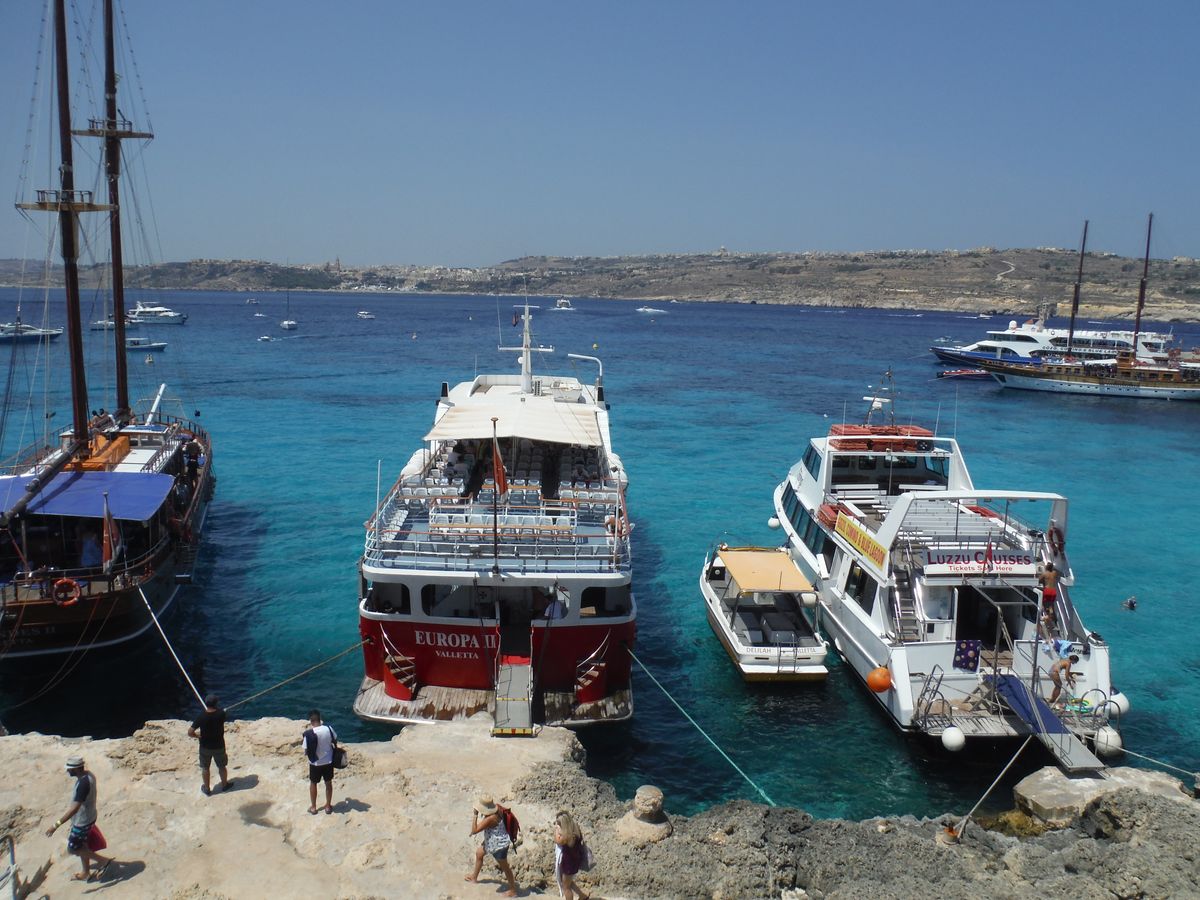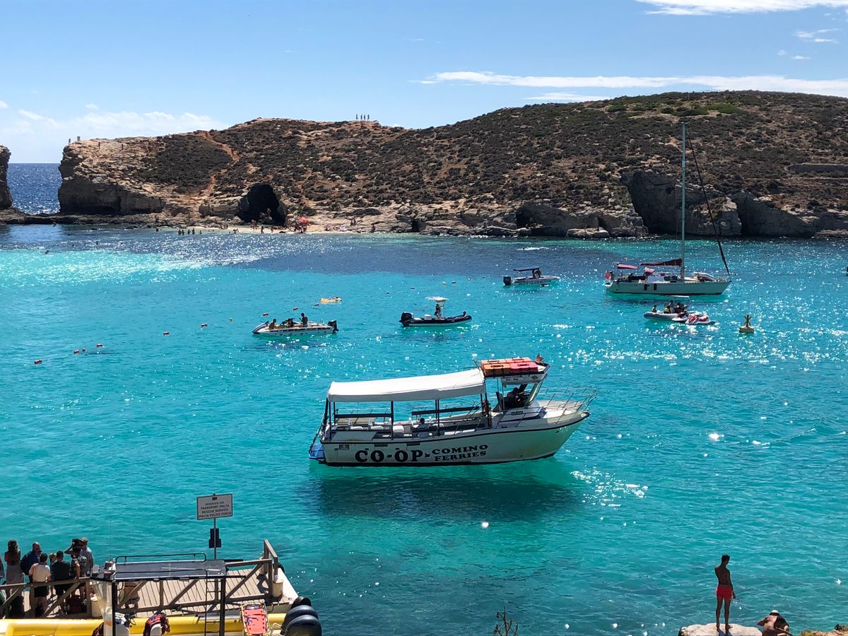 スリーマハーバーにはキャプテンモーガンのツアースタッフがたくさんいたので、その人たちにバウチャーを見せながら待ち合わせ場所に辿り着けました。船内はソフトドリンクからアルコール(ビールとワイン)まで飲み放題でした。決してすごい綺麗ではないですがトイレもあるので安心です。座席も十分にあり、快適でした。有料ですが、サンドイッチも購入可能です。まずはコゾ島に向かいます。キャプテンモーガンのスタッフはとてもフレンドリーで優しかったです。コゾ島に着くと、待っている観光バスに乗って名所を回るのですが、このバスが最悪でした。中は汚いし、名所で降ろしてくれるのですが、集合時間だけ告げられて、そのままどこかへ去っていってしまったので少し不安になりました。集合時間に戻っても、なかなかバスが現れません。しばらく待たされるとバスが帰ってきたので安心しましたが、新たなツアー客を乗せて帰ってきたので、ここで初めて巡回しているバスだったのかと気がつきました。他のツアー客はバスに荷物を置いて観光していた人もいたので、バスが帰ってこなくてすごく不安そうでした。もちろん貴重品は入っていないでしょうが、貸切でないのであれば伝えておいて欲しかったかなと思い、それだけが少し残念です。一つ一つの滞在時間も短いので、お昼を食べる時間はないと考えたほうがいいです。何か持参するか、カフェなどで軽く買って食べるのをお勧めします。コゾ島の街は素晴らしかったです。その後はまた船でコミノ島へ向かいます。ブルーラグーンに近づくにつれて海の透明度が高まっていき、一気にテンションも上がりました。ブルーラグーンはすごく混み合っていましたが、景色は本当に最高!ここでも時間がないので、とても慌ただしいですが、海はとっても綺麗なので楽しめました。ゆっくり海水浴を楽しみたい場合はブルーラグーンのみのツアーをお勧めしますが、もともと安いツアーだったので、それを考えると満足かなと思います。