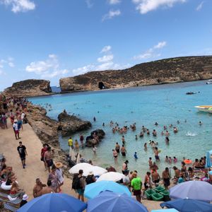 日程的にも厳しいと思い、ゴゾ島とコミノ島を1日で行けるこのツアーにしました!最初はゴゾ島からで基本バスに乗ってゆっくりと一周出来るような感じでした。途中、止まって写真を撮ったりお昼を食べたりとする時間はありました。コミノ島は海がとてもきれいで最高でした!観光客がたくさんいて滞在時間も限られているので早く海に入ることをオススメします。海に入らなくても、景色を眺めたり写真撮ったりしてもいいと思います。
