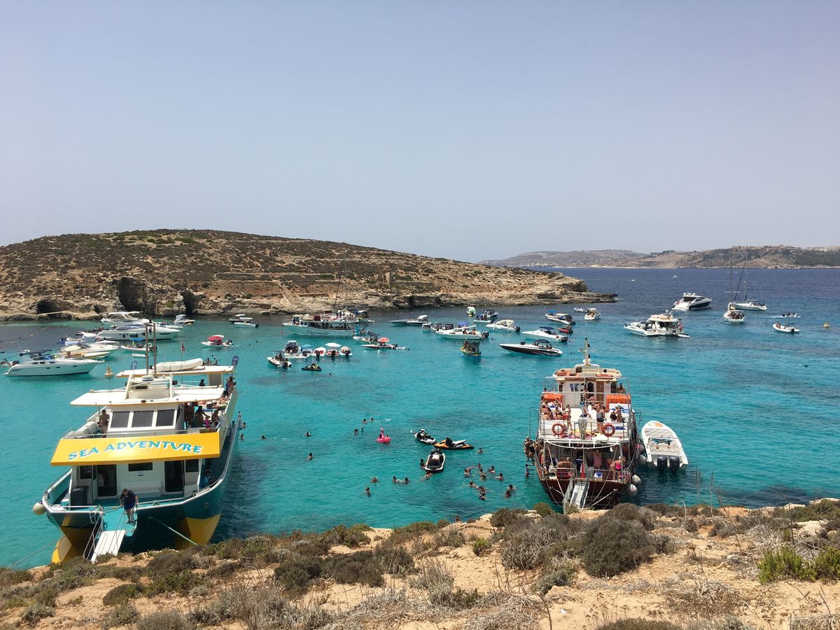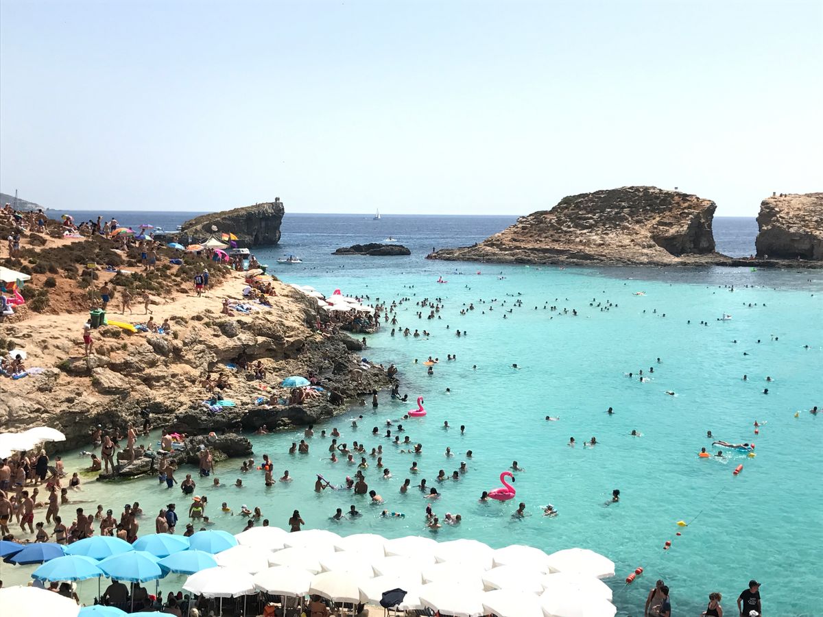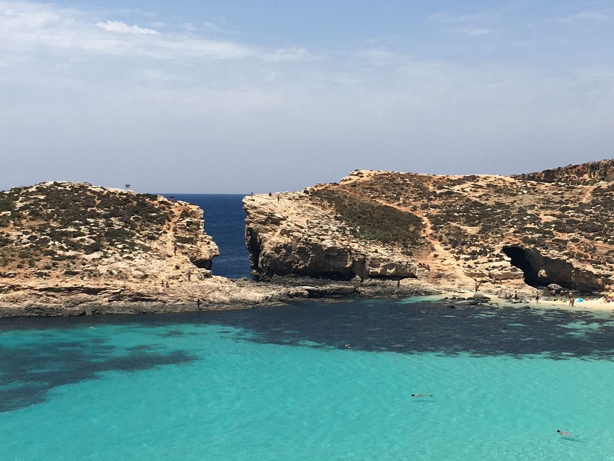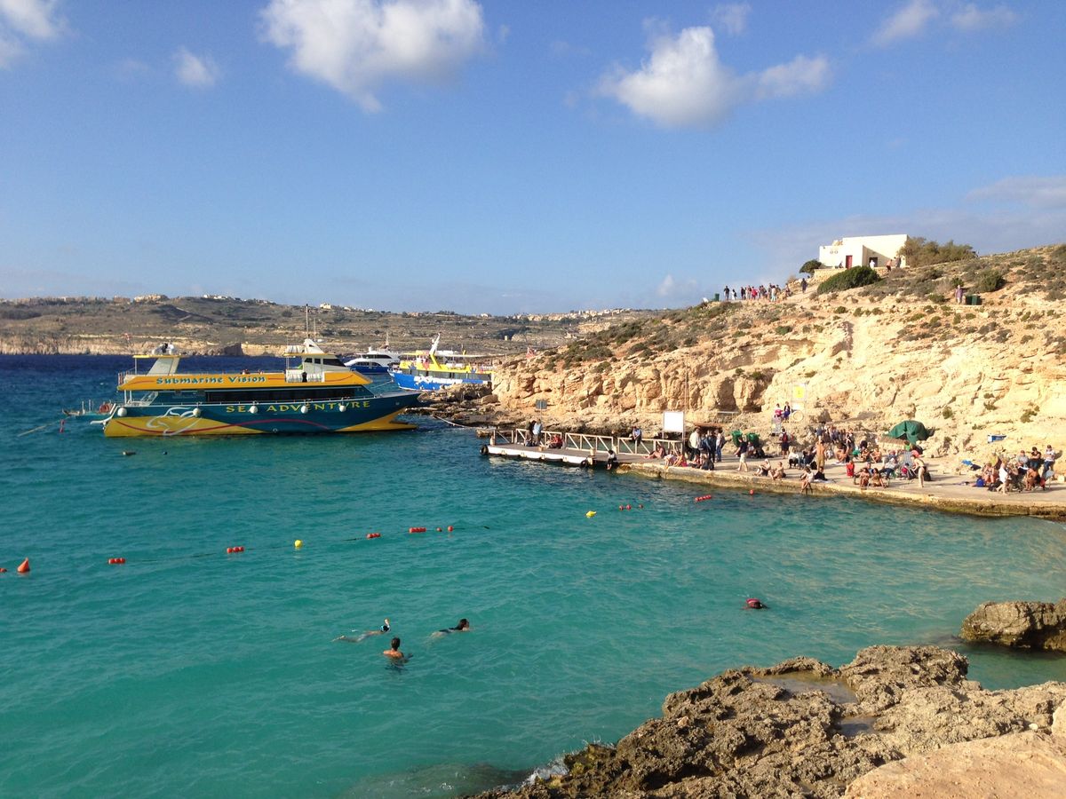 1日コミノ島に行きました。鮮やかな色をした海はとても綺麗です。シュノーケルやぷかぷか浮いているだけでも気持ちいいと思います。奥の方で地元(?)の少年や旅行者の少年たちが崖の上から飛び込みをやっていたので、一緒に飛び込みに参加しました。怖いけど楽しかったです。