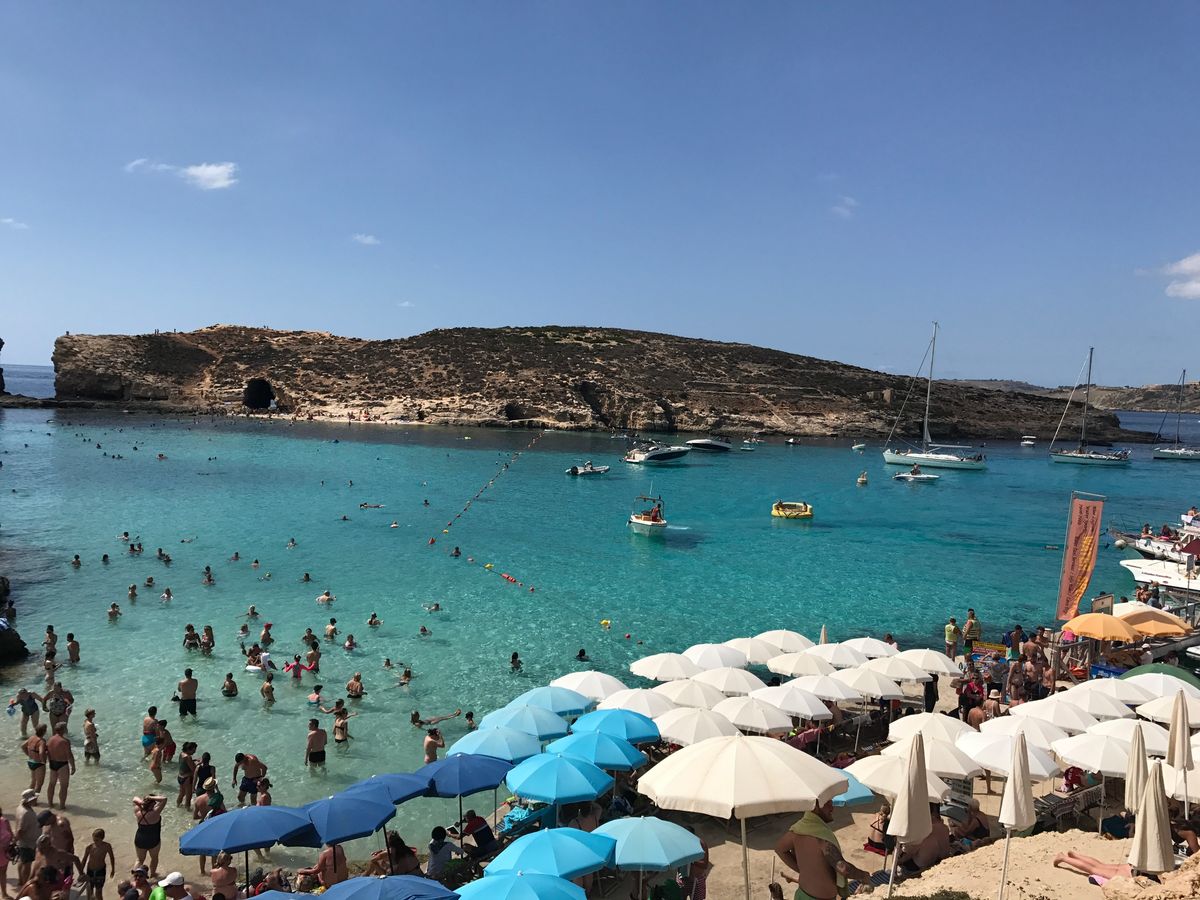 コミノ島の綺麗な海を一日楽しめると思って申し込みましたが、行きのフェリーはスリーマ港からマルタ島を時計回りで回るルートだったため、10時すぎに港を出てコミノ島に着いたのは結局午後1時くらい。帰りのフェリーの出発時間までの3時間半程度しか滞在できませんでした。コミノ島に着いた時はビーチはすでに大混雑でパラソルなどを借りることはできませんでした。帰りのフェリーは同じく時計回りだったので乗船時間は短くて済みましたが、全体として往復のフェリーの乗船時間が長すぎて、コミノ島の綺麗な海を満喫というイメージとは異なりました。あと、フェリー乗り場までの送迎用のマイクロバスはエアコンが無く、車内はかなり蒸し暑かったです。夏のこの時期は自分で港でフェリーチケットを買って行った方が良いと思いました。