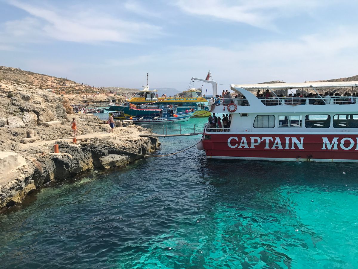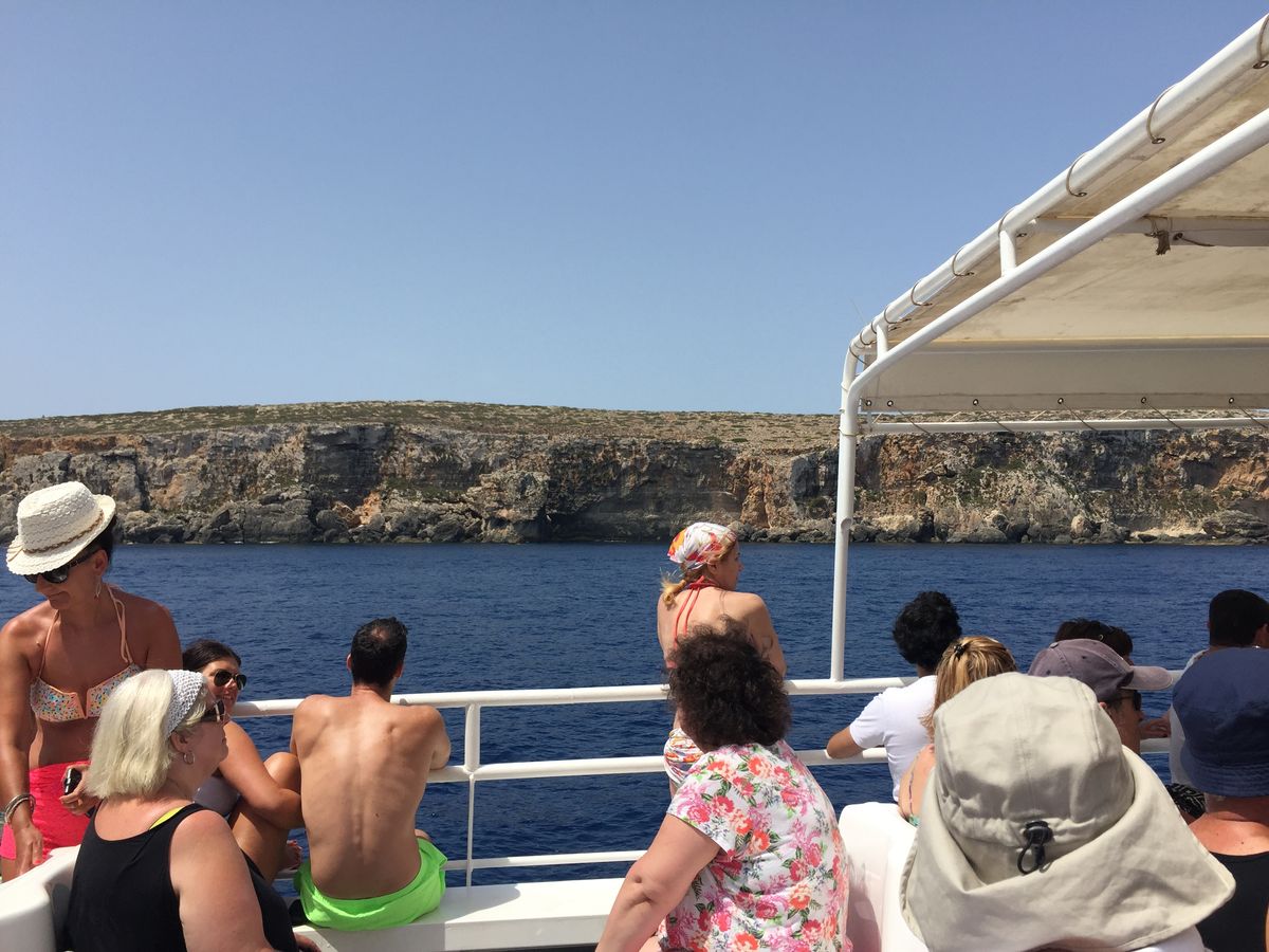 今回だけかもしれませんが、全て時間通りに進まず結局移動のみで終わった感があります。まず出発までにだいぶ待たされました。ゴゾ島でも降りて散策できる時間が短かすぎて、ほぼ写真とるだけで終わり。時間がおしてるにも関わらず、コミノ島への船の出発も急ぐ気配なし。予定ではコミノ島で1.5時間あるはずが、着いたら帰りの時間まで40分ほどしかなく、挙句エクスカーションのボートが来ないトラブル…その間岩場の上で20分ほど待たされ。