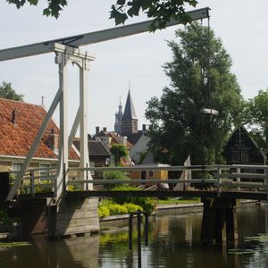 運河沿いに広がるかわいい家々の美しい風景が続きます。いかにもオランダ風の白い跳ね橋を渡り、やがて街の中心部に近づくと、塔のある市庁舎にたどり着きます。