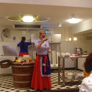 バスで風車を見に行き、その後、船に乗りチーズ工房見学。チーズの味見もたくさん出来ます。