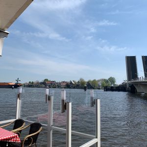 さて、バスはまずザーンダムに到着します。私達の目的地はその次のザーンセスカンス。降りて橋を渡る時からたくさんの風車が見えて気分が高まります。ザーンセスカンスの保存地区内には、風車はもちろん、小さなレストランやカフェが数件と、お土産屋さんもありました。とても素敵な場所ですが、お昼に近づくにつれ非常に混み始め、入るのにも並ぶようなお店もあったので、早めにバスツアーをスタートすることをお勧めします。ランチとしてお勧めなのは、橋のたもとのバス停側のイタリアンレストラン。テラス席からは並び立つ風車をじっくり眺められます。