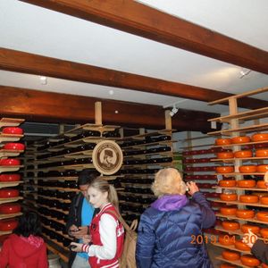 次は、フォレンダムにて下車。ガイドブックには情報があまりなかったのですが、かなり楽しめる港町でした。バス停の周りは普通の住宅街なのですが、港沿いの通りはカフェやお土産屋さんで賑わっています。港町ならではの海沿いの屋台で魚の唐揚げやクロケット、パンケーキを売っているので、一つ買って港の階段に腰掛けて食べました。エダムチーズや木靴のお店もあり、ザーンセスカンスよりは空いていたのでじっくり見られました。最後はエダムチーズ工場。デモンストレーションを見た後にお土産も買えるようですが、既に購入済だったのでパス。2つの場所をゆっくり見て&チーズ工場で小休憩を挟んで、17時にアムステルダムへ帰着。