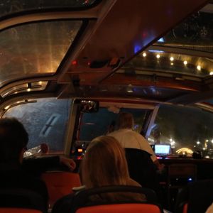 小雨が降る中の参加となりました。乗船場には10分前につきましたが、すでにリストには座席番号が記載されていたので、早く行っても、遅く行っても問題なさそうでした。待合所がないため、乗船までの間、小雨が降る岸壁で待たされました。パリやロンドンのクルーズでは豪華な待合所があり、ウェルカムドリンクサービスがあったので、ここらへんは改善してほしいですね。船はこじんまりとした船でしたが、席はゆったりしており、料理もおいしかったです。中でも、飲み物は好きな物をオーダーできるのですが、グラスが半分以下になったらボーイが注文を聞きに来るので、ついついワインを飲み過ぎました。夜景も良かったです。値段も手頃なのでちょっとしたレストランで夕食をとるのであれば、こちらをおすすめします。