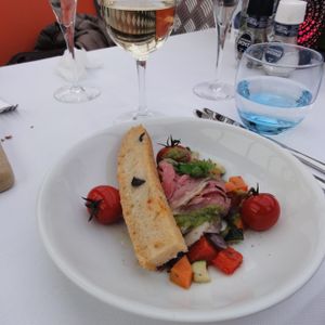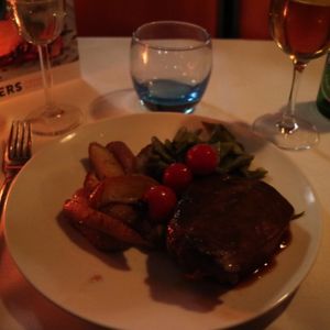 夜遅いのが日本人にはつらいところです。(夏は8時から10時)食事はおいしかったです。ワインも次々と継ぎ足され、ほとんど飲み放題状態。六人でテーブル二つでしたが、一つのテーブルにメインディッシュがなかなか来ず、ほかのお客さんのテーブルは下げ始めていたので、抗議したら、びっくりしたようですぐ持っては来ましたが、冷めていてちょっとがっかりでした。