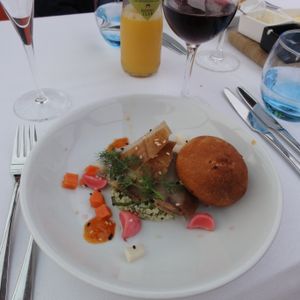 車内のアナウンスも騒音で良く聞こえない時が多く、夜景を見ながら、ディナーを楽しむのとは程遠く、途中で下船もできず、外国語で苦情を伝えることもできず、苦行の2時間半でした。 騒ぎがいつ収まるのかにばかり気を取られてしまい何を食べたかも余り覚えていません。