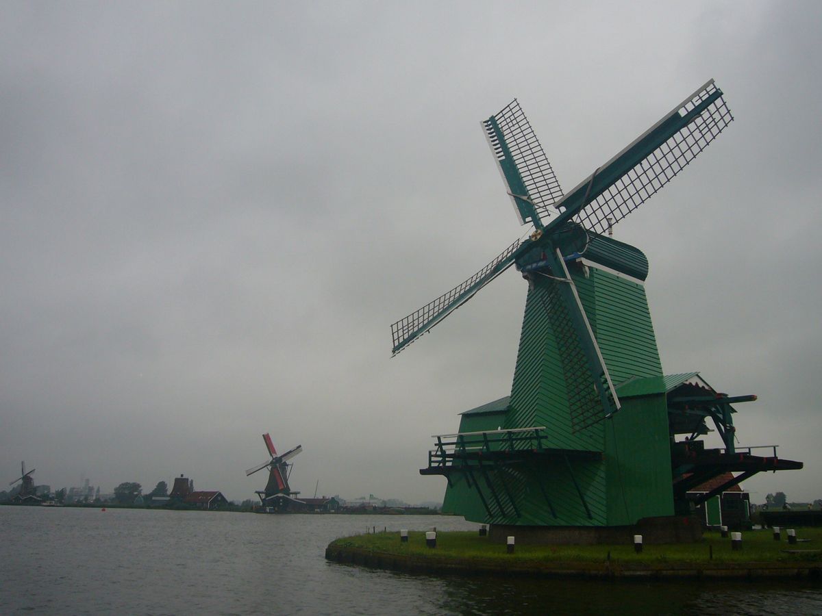 朝出かけた時に、天気がとても良かったです。昼頃ザーンゼ・スカンスの風車村に着く前に、雨がパラパラ降り出して、バスから降りる時土砂降りの雨でした。バス運転手から使い捨てのレインコード(€2)を買って、観光しましました。一時間以上の滞在時間がありましたが、天気が悪いと奥の方まで歩く気はありませんでした。