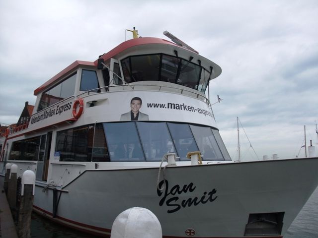 最初に、マルケンの木靴工房に向かいます。機械を使って手彫りでうまく掘る職人さんが笑いを含めて紹介してくれました。次に、フェリーの乗ってフォーレンダムに行き、