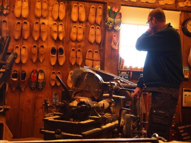 有料で風車の中も見学できるのですが、そんな時間はなかったです。その後港町の自由散策、木靴作りの見学と移っていきました。