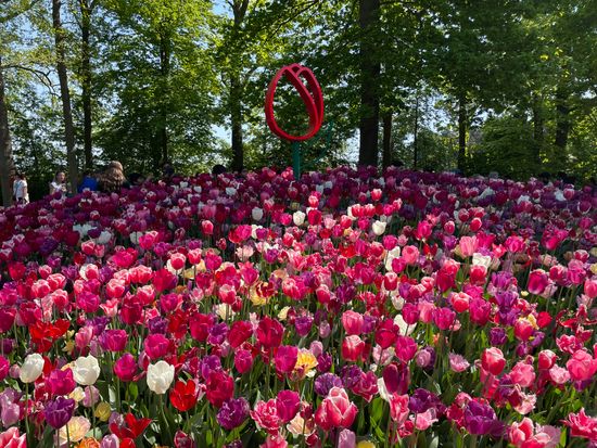春のシーズン限定のチューリップ天国。世界にはこんなにチューリップの種類があったんだ、と驚きました。木立の中にどこまでもチューリップの花壇が続いていて、非日常感たっぷりです。写真のように、チューリップのレイアウトセンスも素晴らしかったです。
