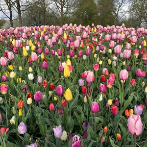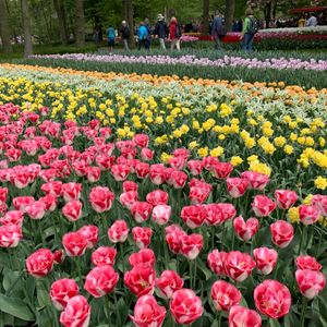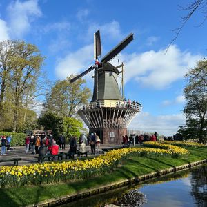 4/30朝9時出発の便に参加しました。集合場所のTHIS IS HOLLANDはアムステルダム中央駅のすぐ裏側のフェリーで渡ったところにありますが、駅も乗り場も大きいので十分時間の余裕を見て行った方が良いと思います。建物に大きくTHIS IS HOLLANDと書かれてるので遠くからでもわかると思います。新しい建物でお手洗いも綺麗でした。キューケンホフ公園までは渋滞無しで1時間弱で到着しました。自力で行くのは大変そうだったのでツアーで良かったと思いました。バスは公園入口からすぐの場所に止まってそこが出発場所になります。朝イチでも観光客はとても多かったですが、賑やかで楽しかったです。色とりどりのチューリップはとても綺麗で感動しました。公園内は普通にゆっくり回って2時間程でだいたい全部のエリアを見れました。後の予定があったので12時の便で戻りましたが十分満喫できました。チケットには帰りの時間が書かれてますが、好きな時間で帰れますので安心してください。園内には食事する場所もありハンバーガー屋さんなども出てます。ハンバーガー美味しかったです。この日は曇りで気温が低くかなり寒かったです。私たちも含めて日本人は軽装の方が多かったのですが、外国の方はみんなダウンなどしっかり冬の装いでそれくらいで丁度いい寒さだったので、春とは言え気温と服装には気をつけた方が良いと思います。帰りもスムーズに戻れましたしツアーに申し込んで良かったなと思います。