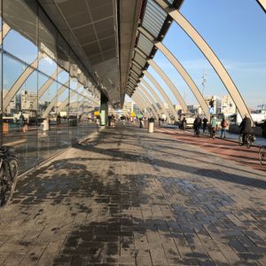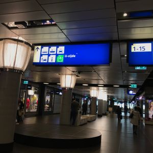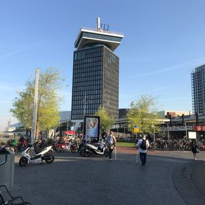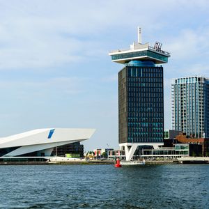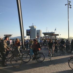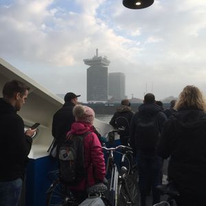 アムステルダム中央駅の海側から、対岸に向かう無料の船が3分おきに出ています。白地に青の大きな船ですので、わかりやすいかと思います。