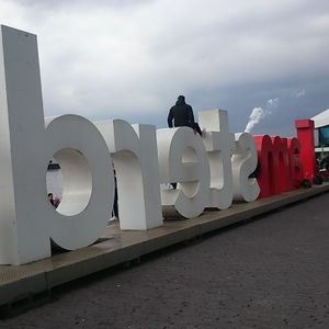 対岸に到着したら、ADM'Sルックアウト入り口にある、写真のような[HOPONHOPOFF]の看板を目指してください。行列をして受付を待ちます。