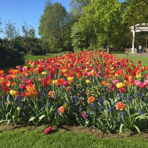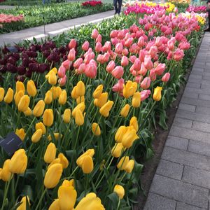 園内中央にある温室の中にはチューリップのオンパレードで満開でした!それもすごい色とりどりで本当に綺麗でした。外のチューリップはあまり咲いてなかったので、ここは見頃で一番気に入ったスポットです。