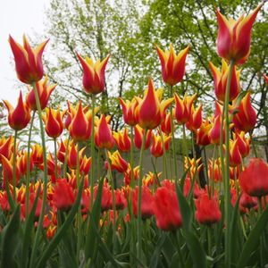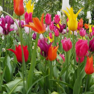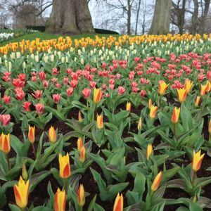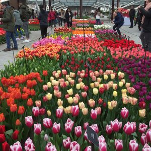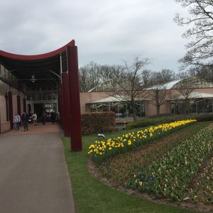 園内は本当にたくさんの種類のチューリップが咲いていて、どこを見てもキレイで感動しました。日本では見たことの無い薔薇のような八重咲きのものや、花びらの周りにギャザーが付いているものもあり、どんなに見ていても新しい発見ばかりで飽きることはありませんでした。生憎天気はあまり良くなく寒かったのでチューリップの開き方は控え目でしたが、屋内で咲いているものはどれも満開で、また色々な種類が密集しているのでとてもボリュームがあり、見応え満点でした。この時期にしか味わえないチューリップの楽園なので、春にオランダ旅行をされる方は是非行ってみるべきだと思います!