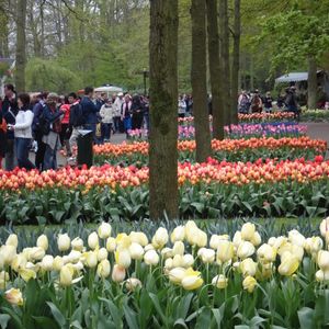 4月後半のツアーに参加しました。アムステルダム市内からのエクスカーションツアーでは恐らく最大手の現地催行会社の集合場所にあつまりました。日本からALANネットにて手配をしたので、現地のツアー会社による催行ということも理解し、集合やチケット配布、その他バスへの案内まで、かなり気合いを入れて臨まないと、周りの勢いと人の多さに圧倒される状況でした。日本から個人で手配された方々は我々だけの様子で、ほとんどは欧米系。アジアからちらほらという集客状況でした。日本から参加する場合は集合時間の30分まえには、催行会社カウンターでチェックインし、チケットに変えてもらわないと、平気でオーバーブックによって、参加できない、なんてこともありますので本当に注意が必要です。一言で言うと、「バスに乗って席を確保するまでは、油断できない」ということです。ヨーロッパのエクスカーションには数多く参加している方ですが、アムステルダムのこのツアー会社はかなり人が集中するので、余計に注意が必要です。さて、ツアーそのものですが、全般的には満足しました。ツアー時間も3時間と8時間が選べましたが、いろんな方のツアー参加感想などを拝見し、参考にした上で8時間を選択しましたが、それが正解でした。本音を言うと、行き帰りの往復(片道45分)を含めて8時間が理想ですが、現地で3時間では、2ヶ月しか開園期間がないキューケンホフのすばらしさや、日本にはない雰囲気と豊かさは感じられないです。それから園内で飲食できるオランダ地方特有の食べ物や飲み物(ビール含む)についても、とってもおいしくて、値段もリーズナブルと感じました。現地でヨーロッパでできる花見と思って、一日歩き回って、花々を愛でながら食事もする、できればピクニックのような準備をもってくればもっとよかったと思いましたが、混雑している割には、各展示施設の中を上手く探せば、のんびりできる場所もあって問題ないです。トイレもきれいなものが十分な数あります。基本的に行き帰りのバス以外は自由行動ですので、ガイドブックを4ユーロで購入し、行くところを全部回って一日過ごせるところです。何年後かにはまた行ってみたいと思いました。帰りのバスの集合場所でも担当者によるミスや不都合もあり、現地ツアー会社の仕切りは信用しない、ということを念頭において行動すれば本当にすばらしいツアーです。