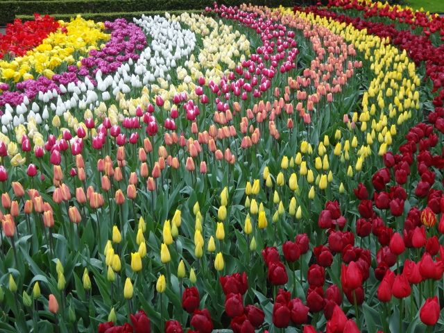 チューリップ、ヒヤシンス等様々な花が満開で、赤、白、黄、青、実に様々な色の花を満喫することができました。たくさんの観光客がいましたが、園内も広くもうすぐ二歳になる娘も大満足でした。ベビーカーでの移動も大丈夫です。園内にカフェや屋台があり、食事にも困りません。公園までアムステルダムから車で45分とアクセスしやすい場所にあります。オランダでお花を満喫したい方には、お薦めの場所です。