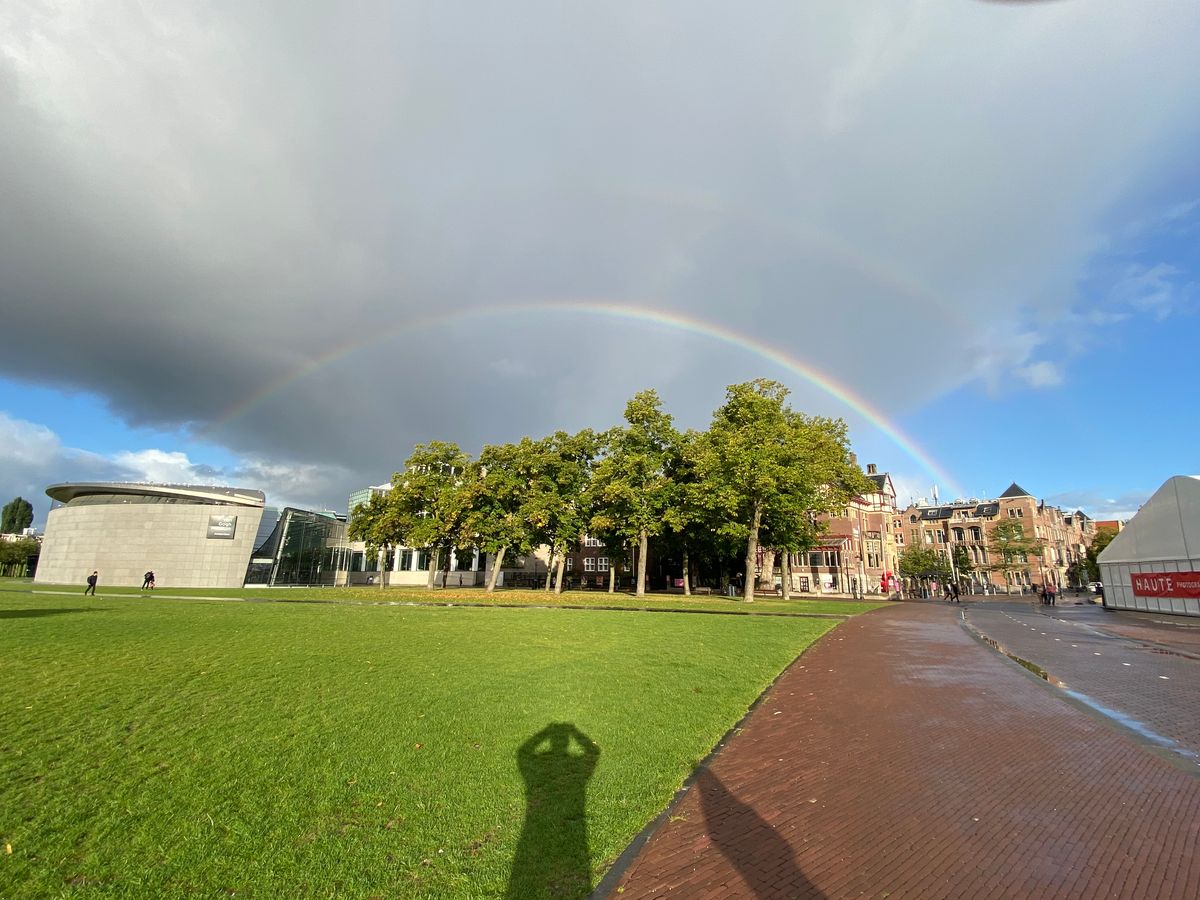 そして素晴らしいハプニング、ゴッホ美術館にかかる完璧な虹!ガイドさんも歓声を上げるほど!
