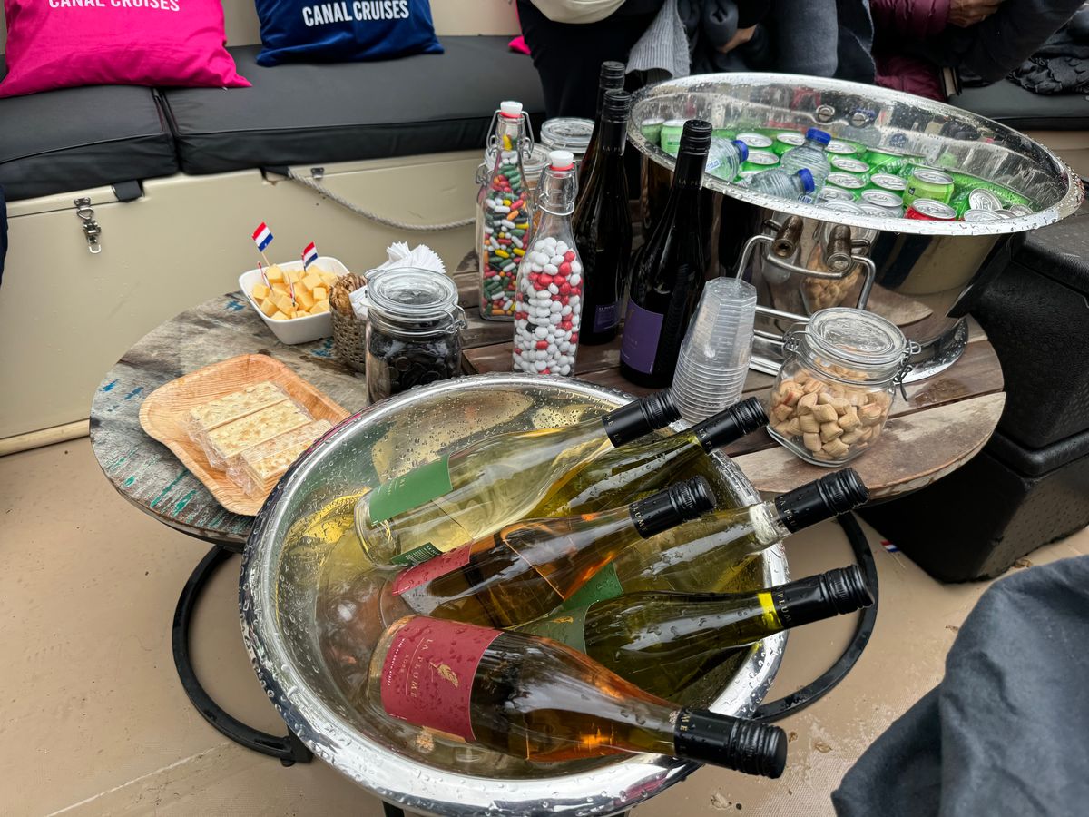 4/24の夕方に参加しました。この日がたまたまだったのか、極寒の日で風も寒く、しかも時折雨も降った日で、屋根のないボートで、薄い毛布にくるまり、凍えながらの1時間半のクルーズでした。ボートにもトイレもなく、発着所の近くに公衆トイレがあるとありましたが、少し離れた場所のホテルのトイレの利用となったようで、ワインやソフトドリンクも一切飲みませんでした。時期にもよりますが、暖かい服装をおすすめします。チーズとお菓子も少ないです。16時45分に集まっても、17時すぎてもすぐに始まらず、いらっとしました。夜景を少し期待していましたが、日の入りが遅いため明るい時間でのクルーズでした。