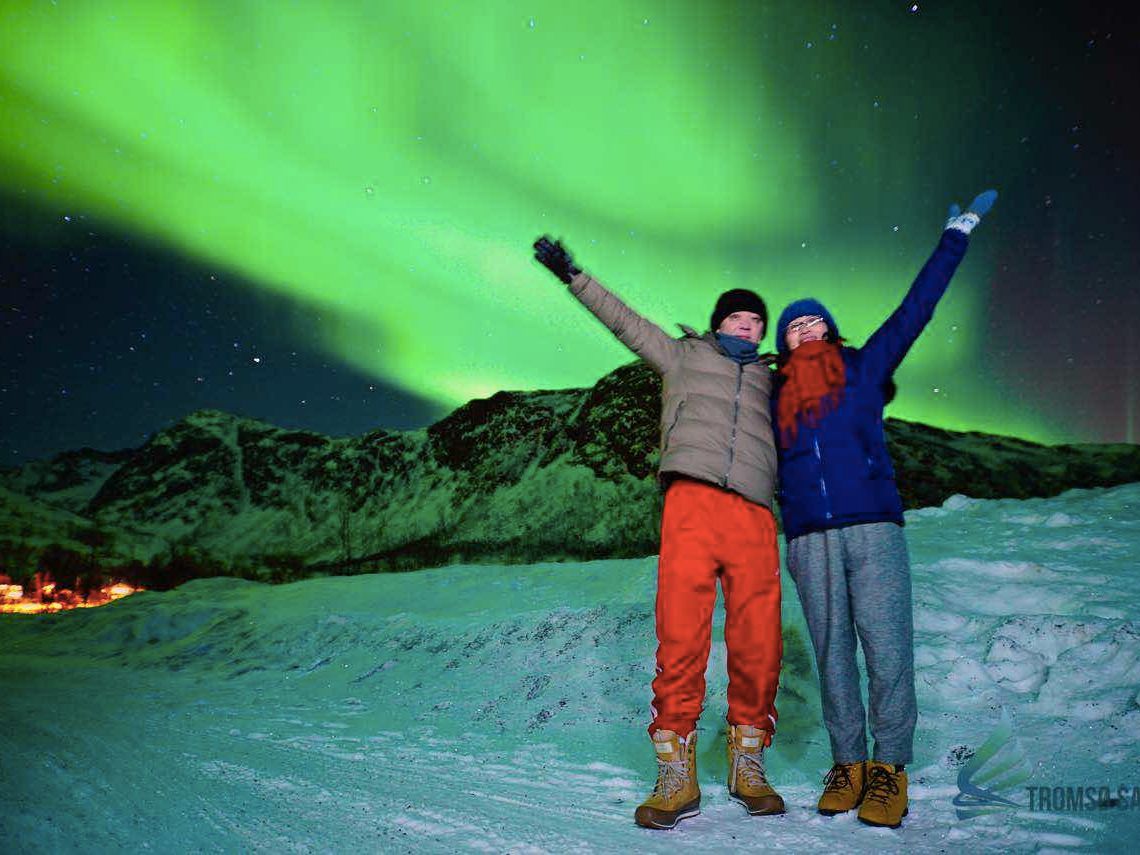 2夜連続プランで参加しました。2夜とも天候が悪くオーロラは見れないかと思いましたが、晴れている地域を探し、フィンランド国境付近までバスを走らせ、オーロラを見ることができました。1日目は赤色も含んだ大きなオーロラを撮影できました(iPhoneでも撮影できます!)が、2日目はごく弱いオーロラのみでした。天気が悪くても晴れ間のある場所まで行くので、天候よりも当日のオーロラレベルによるかと思います(アラスカ大基準で2だと運が良ければ見れる程度、4以上あれば晴れ間さえ見つかれば見れると思います)。肉眼でオーロラを見たのは初めてでしたが、実際に見たことのない人は多分色々な意味で驚くと思います。なお、この会社のツアーはトイレ付き大型バスで移動するのでトイレの心配はありません。午後7時半に出発し、トロムソへの戻りはだいたい午前1時から2時くらいになるので、結構しんどいです。
