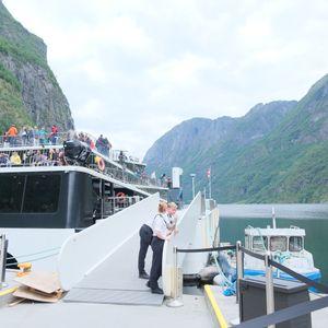 現地のフィヨルドツアーから申し込みするのとベルトラから申し込みするのを迷ったが、金額もほぼ同じようなので、ベルトラで申し込みました。7月中旬で混雑していたのか2週間前に予約を入れたら、グトヴァンゲンで2時間半待ち時間があるフェリーしか予約できないとの回答。早いフェリーだとフロムで待ち時間が長いようですが、実際行ってみたら、フロム鉄道での乗り換え時間が短かったので、席がなかなか見つからず、通路側しかなく車窓が楽しめなかったです。夏は早めに申し込んだ方がよいみたいです。