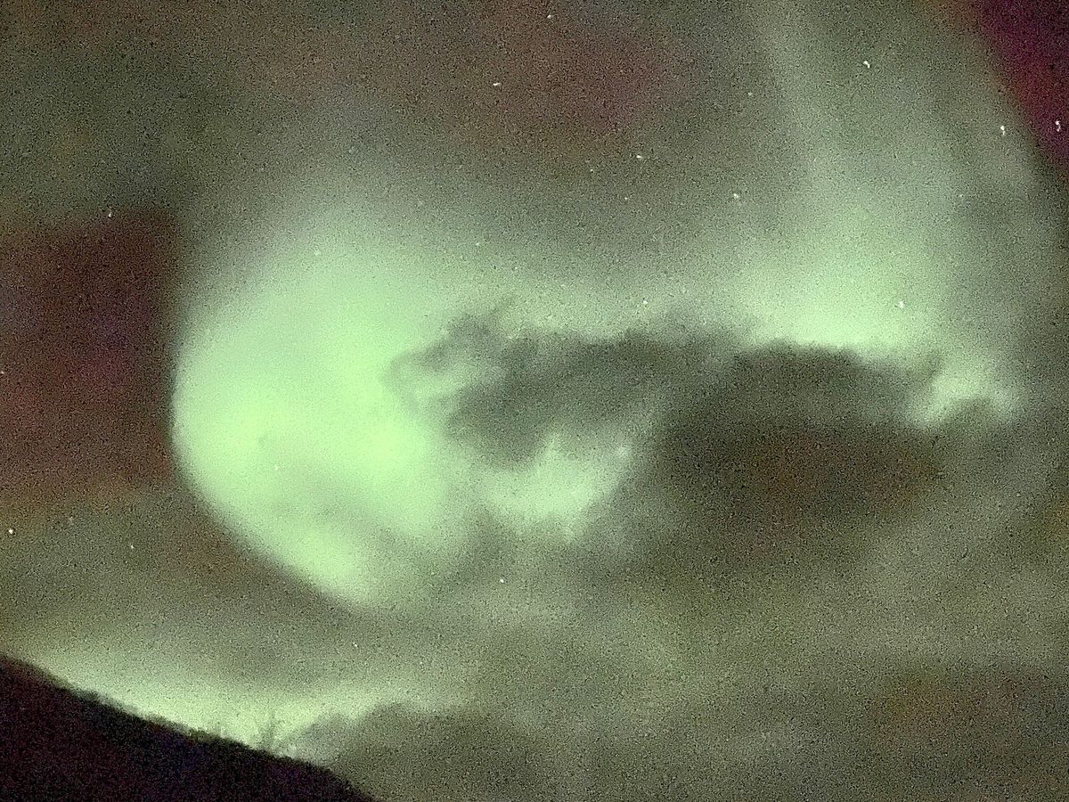 3ヶ所場所を移動した最後のポイントでうごめくオーロラを見る事ができました。