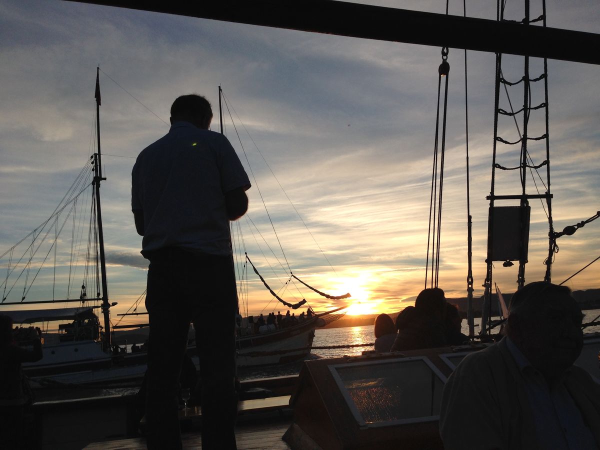 海の上で日差しがやわらいでくると、海風が寒く感じられたので、上着は必須です。