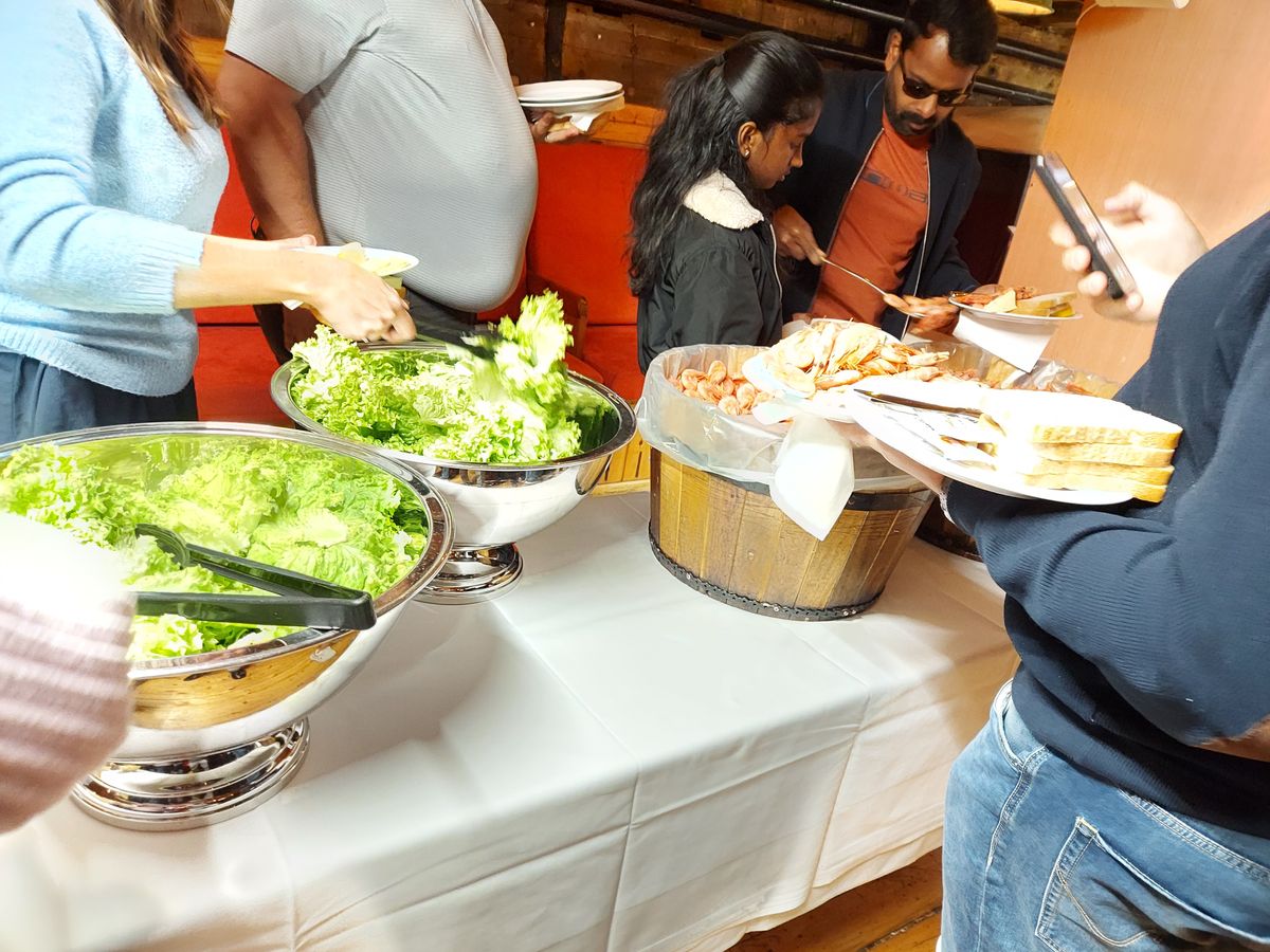 明るい夕方からすっかり暮れて夜になる景色が本当に美しくかったです。スタッフの方も親切でした。夜なので寒くなると思ってダウンコートを持って行ってよかったです。毛布も貸してもらえます。食事は、説明通りエビのビュッフェ(殻つきゆでエビとパン)でした。シーズン終わりのせいか写真のような料理はなかったです。大きなボールにエビを山盛にとり、みんなでひたすら殻を剥いて食べました。エビ好きにはよいと思います。飲み物は好きなものを買えます。