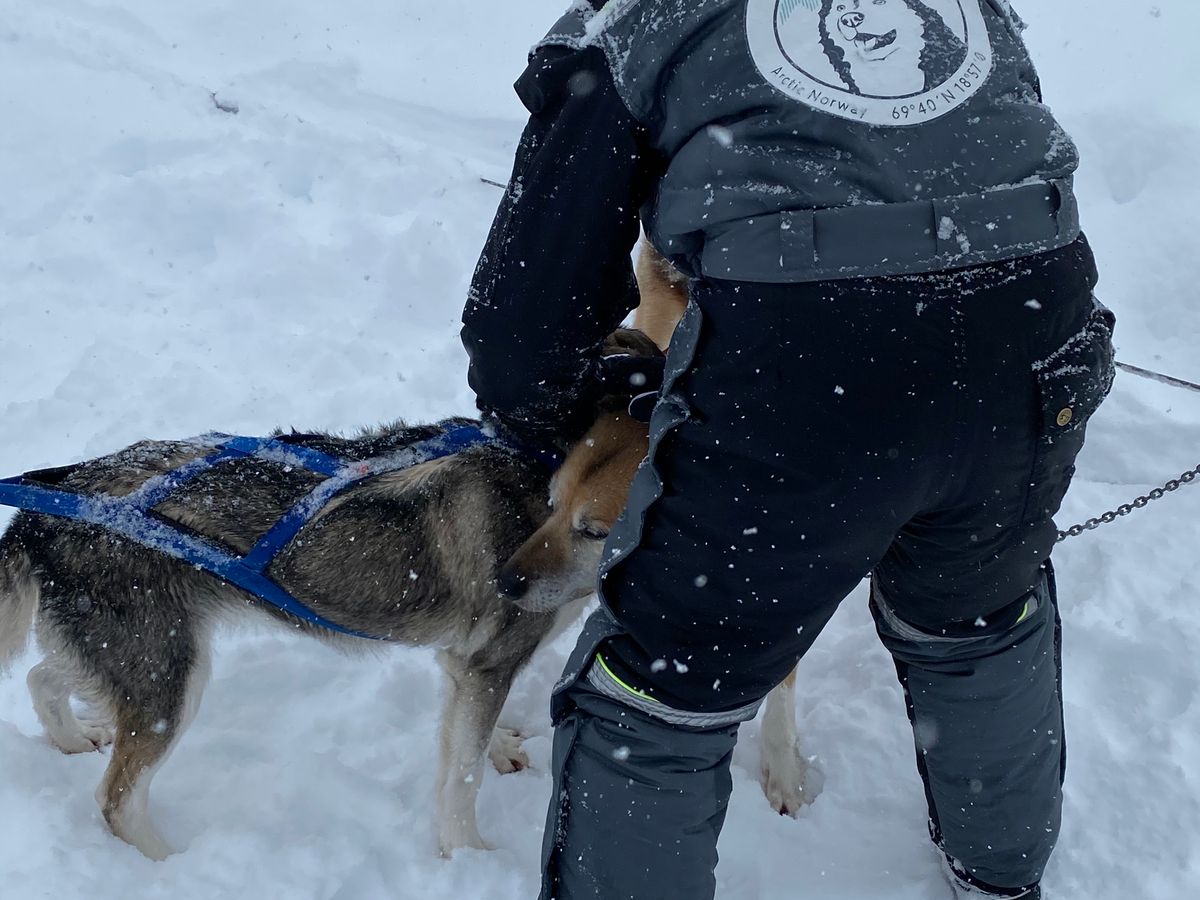 別の犬ゾリツアーに行くカップルは、犬ゾリとテントで2泊3日の雪原の旅に出るところだった。うらやましい。