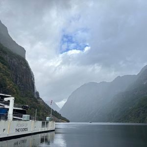 フィヨルドクルーズは外に出て景色を観たいと思うと、結構寒いです。暖かい格好、羽織れるものなどがあるといいです。