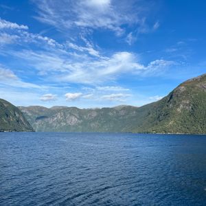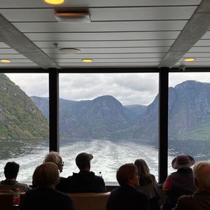 ベルゲンからのモーレイまでの4時間クルーズは、雨中でしたが、沿岸の風景も十分に楽しめる景色で船内にいたり、偶にデッキに出たり楽しめました。ランチ見合いで、船内でスナックやコーヒーもありました。自分達はホテルでランチョボックスサービスあって持参。船を降りてバスを2つ乗り継ぎますが、その途中は、食べ物買う時間が殆ど無いです。ノールフィヨルデンでの乗り継ぎ時間に飲み物買う程度。