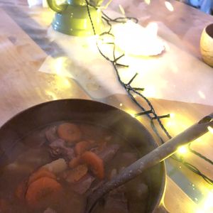 そりの後はトナカイスープとパンとチョコレートケーキの昼食を食べ、ツアー終了です。トナカイスープは日本人には匂いがきついという体験談も読みましたが、私は大丈夫でした。昼食の場で聞かれて、ベジタリアンの人はクスクスを食べていたので、そういう用意もあるようです。