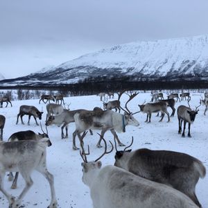 英語わからない2人組で参加しました。最初に参加者が2チームに分かれて、餌やりとそりを交互に体験しました。餌やりは聞いてなかったので、その時トナカイがすり寄ってきたりカバンや手袋を舐められたりしたのが少し嫌でした。レンタルして着替えれば良かったです。そりは非常にゆっくりでした。膝掛けを借りれましたが割と長い時間乗っているので冷えました。終了後トナカイのスープを頂きました。多少クセがあり、友人の口には合わず残していましたが私は美味しくておかわりしました。伝統文化の説明はもちろん英語でしたがジェスチャーも交えながらしてくれたので単語を聞きとりながらなんとか理解でき、楽しかったです。