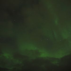 空を見上げてみると、白いモヤモヤしたものが見えます。露光時間を長くとってカメラで撮影してみると、緑色のオーロラでした。その後、オーロラはどんどん濃くなり、肉眼で緑色、さらには紫色も確認できる強さになりました。