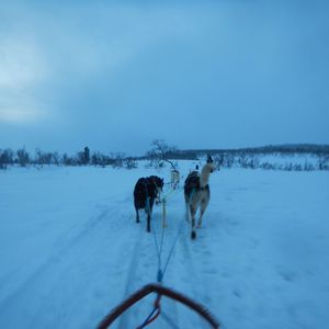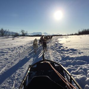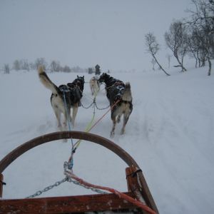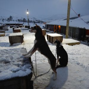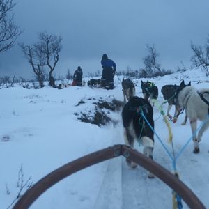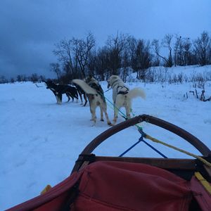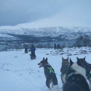 朝は9時半からなのであまり急がなくてもよく、集合場所も都市部のわかりやすい場所にあったので迷うことはありませんでした。現地では、ガイドの方が犬ぞりの乗り方も教えて下さり、安心して体験できました。説明は全て英語ですが、わかりやすく説明してくれることと、操作方法もいたって簡単であったためなんら問題はありません。体験コースは雪山の銀世界を堪能しながら2人一組で交互に操作するというもので、片方はかごのようなものに乗ってリラックスしながら犬たちの走っている姿を後ろから楽しめます。犬ぞりのスピード自体としてはさほど速くないので走りながら2人で会話を楽しむこともできます。また、対岸に都市部があるため、綺麗なオレンジ色の灯りの景色を眺めて楽しむことも一つの楽しむポイントです。ツアー終了後は犬との触れ合う時間が設けてあり、犬たちが非常に人懐っこいため、もちろん犬好き方もそうでない方にも犬たちの可愛さを存分に味わえるのでオススメです。最後に昼食として、伝統料理のサーミというスープとガトーショコラケーキを楽しむことができます。美味しかったです。