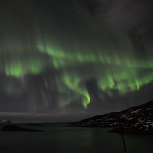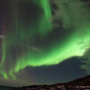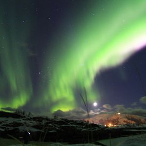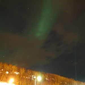 オーロラは、夜中の3時過ぎ、ホテルの部屋の窓から突然晴れ渡った空に、うっすら見ることが出来ました。海沿いのホテルだったので、玄関前で一時間ほど、眺めていたのですが、カーテンのようなもの、立ち上るようなものが見れました。まわりが明るかったせいか、色も白っぽく、前日なら、セニャ島でくっきりしたものが、見れたのにとちょっぴり、残念だったので星4つです。