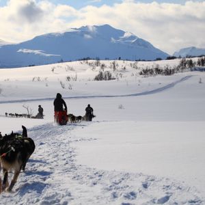 参加した日は快晴で、犬ぞりに乗りながら雪原と海と山という雄大な景色が楽しめました!犬ぞり体験では、2人1組のペアとなり、そりに乗る人とそりを運転する人に分かれて途中で交代します。そりを運転するよりも乗っていたいという人にはガイドさんが付いて運転してくれます。私はガイドさんに運転してもらい、犬ぞり中は写真を撮っていました。犬ぞりのスピードが上がってくると体に当たる風も強くなりますが、貸してもらった防寒具のおかげで寒さはそれほど気になりませんでした。犬ぞり体験前と後に、犬たちと触れ時間があり本当に癒されました!お昼にトナカイの肉のスープが出たので、さらに「ノルウェーに来た!」という感じが味わえてよかったです!