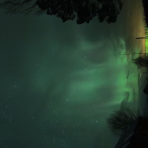 オーロラ予報はレベル4。薄い緑色の帯がいくつも現れ、ごくゆっくり動いていました。(前日はレベル5だったそうですが、曇りで見えなかったそうです)