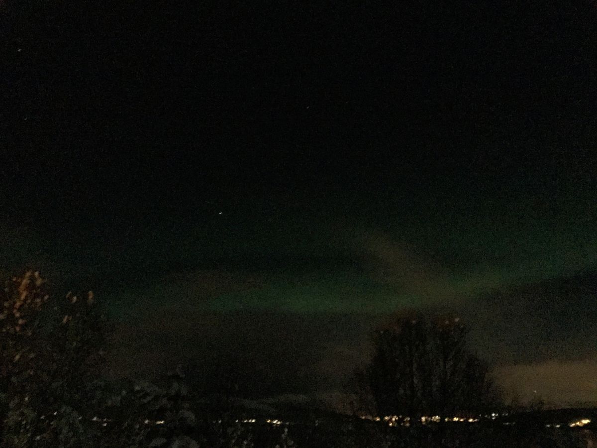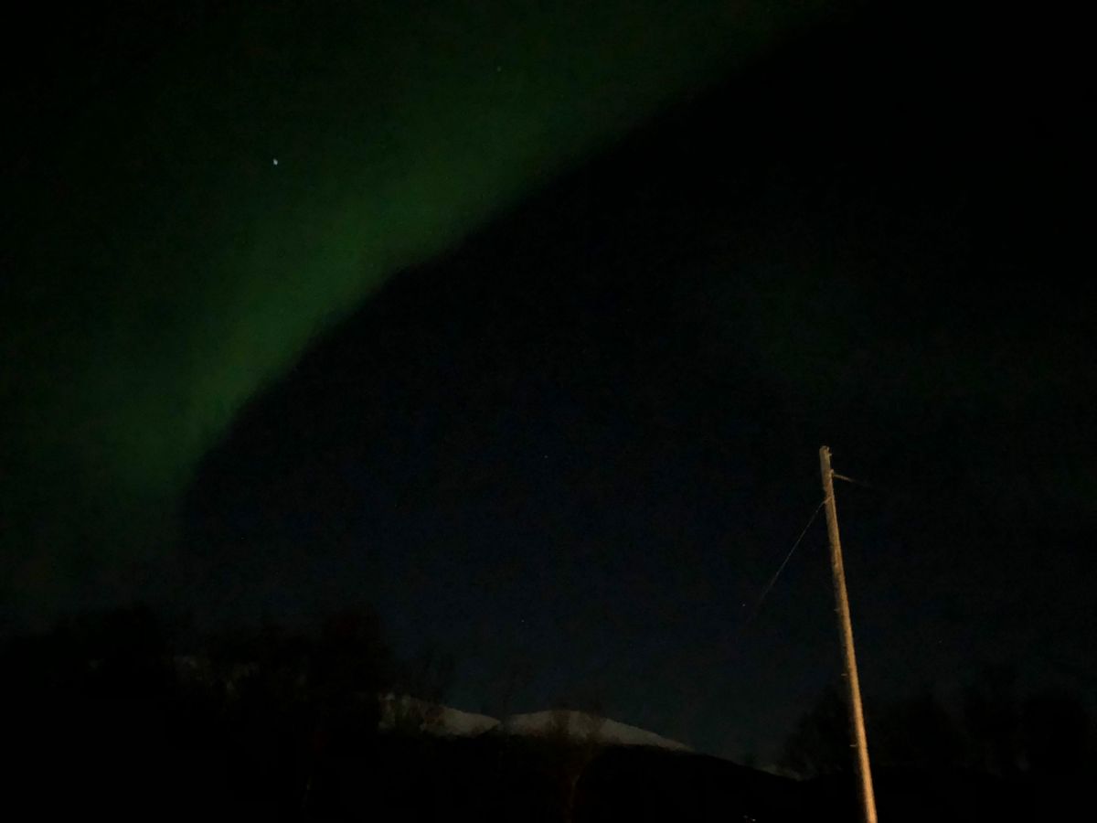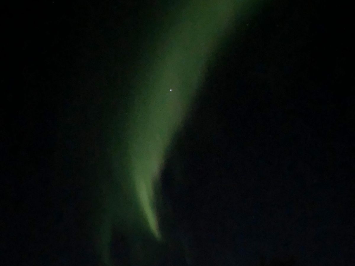 神聖な気分にもなり、ただただ夜空を眺める。この日の Activity Level は10段階中の6だったので、うっすら〜中くらいの夜空にひろがるオーロラを無事眺めることができました。