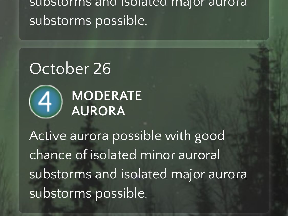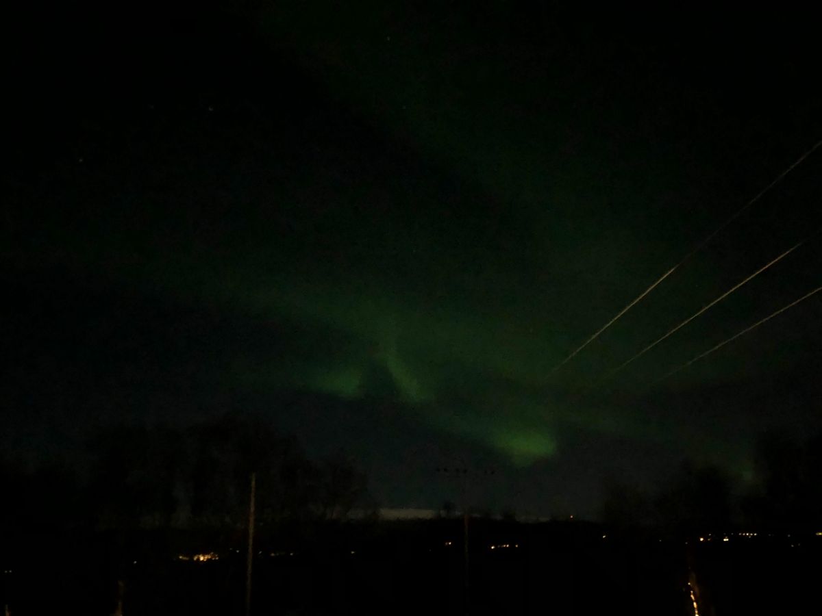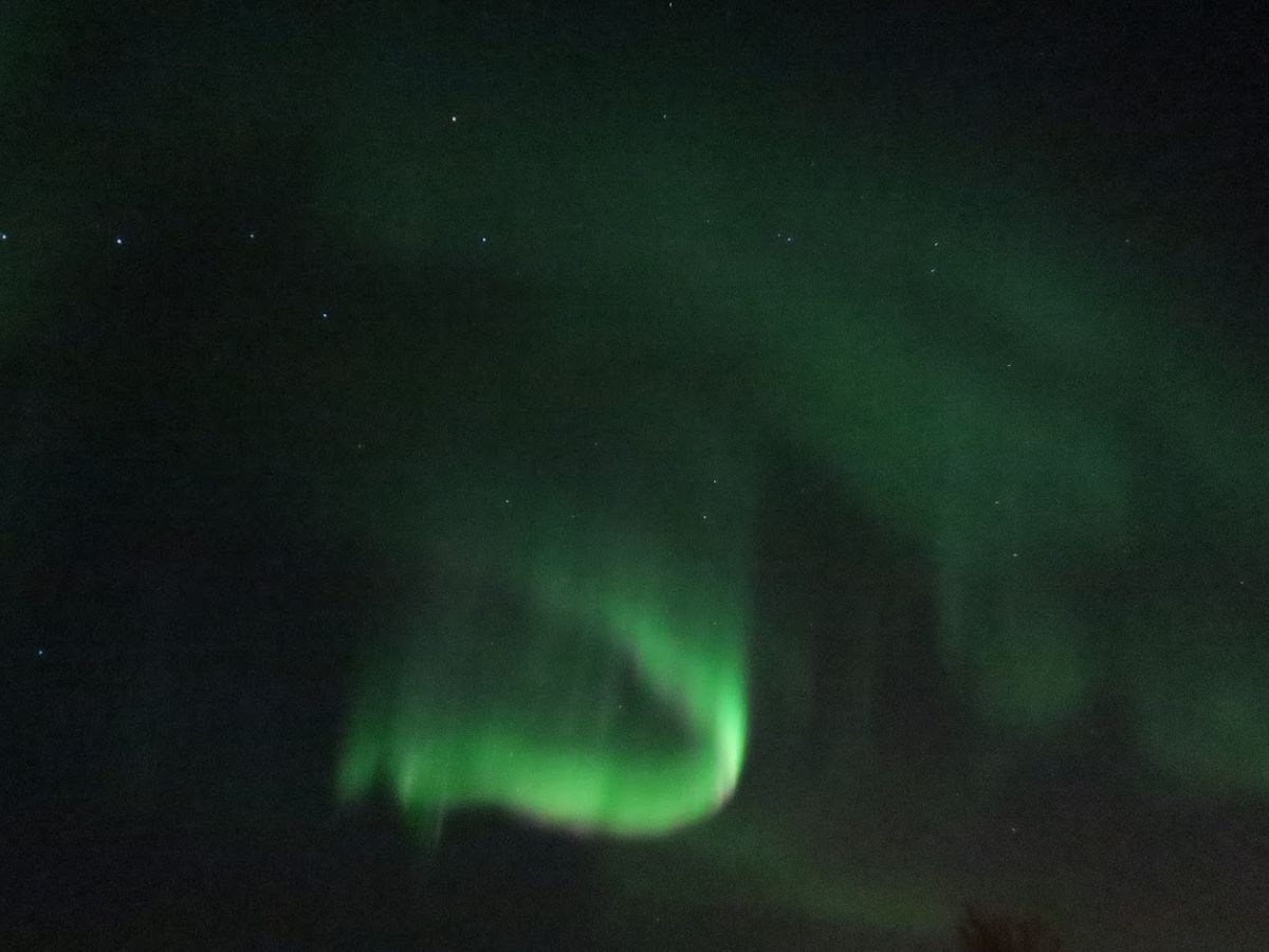 神聖な気分にもなり、ただただ夜空を眺める。この日の Activity Level は10段階中の6だったので、うっすら〜中くらいの夜空にひろがるオーロラを無事眺めることができました。