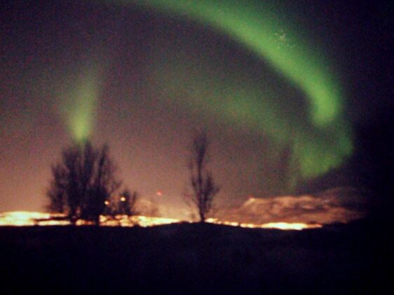 1月3日、トロムソの市街地は朝から雪。極夜なので昼間も暗くクリスマスのイルミネーションが雪に良く映えています。念のため午後2時ごろオフィスに行くと、気さくなお兄さんが名簿チェックしてくれて、6:20にここに来ればいいと紙に書いてくれました。催行を迷う事はまるで無しの様子。6:30集合、クッキーが配られ、準備は良いか?皆んなオーロラ見たいか?あのゴージャスladyについて行って、グッドラックとお兄さんに見送られて出発。降りしきる雪をまともにフロントガラスに受けながら北へ2時間。雪は海から来るから、雪に向かって突き抜けると止むとの事。本当に降りた所は海岸で、星と満月が見えていました。でも雲が次々湧いてくる。雪の積もった崖を降り、波打ち際で海風を受けながら待つ事2時間。ガイドの逞しいお姉さんは、ずっとカメラを撮っています。忍耐が大事と何度も言って。寒い人はバスで待機。一旦諦め、バスに戻り別のスポットに行くとの事。クッキーとホットチョコが配られました。外でサービスするので寒いなーと思いつつふと振り返ると、わー‼︎雲が開いてオーロラが横にたなびいていたのです。満月の光で肉眼で見る色は白っぽくなっていましたが、生き物のようにくねって姿を変える様を30分くらい見る事が出来ました。iPadにnight camera のアプリを入れそれで撮影。手で持ってでしたが、一応肉眼より、緑がかった姿をとることができました。ガイドさんが翌日メールにfacebookやMEGAに入れて送ってくれた写真は、こんなに綺麗だったんだと改めて感動。カメラの方が肉眼より発色が良くなると分かりました。もっと光が強ければ月明かりにもめげず肉眼でも緑やピンクがみれるそうで、もっと見たい気持ちになりました。勿論次もこのツアーを利用します。
