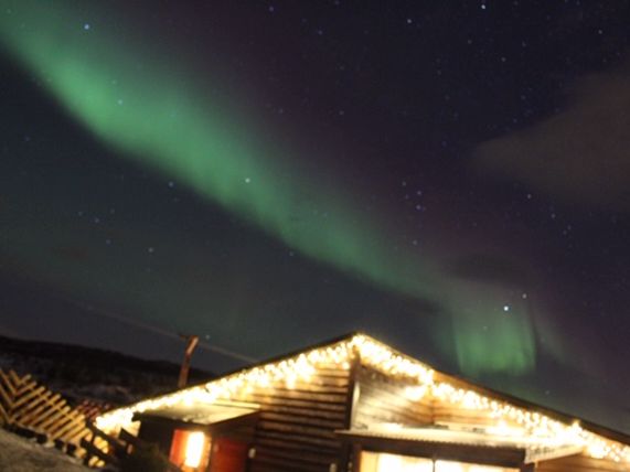 到着してすぐに、オーロラが出ているということで、犬小屋へは行かず、オーロラを見れる場所に案内されました。