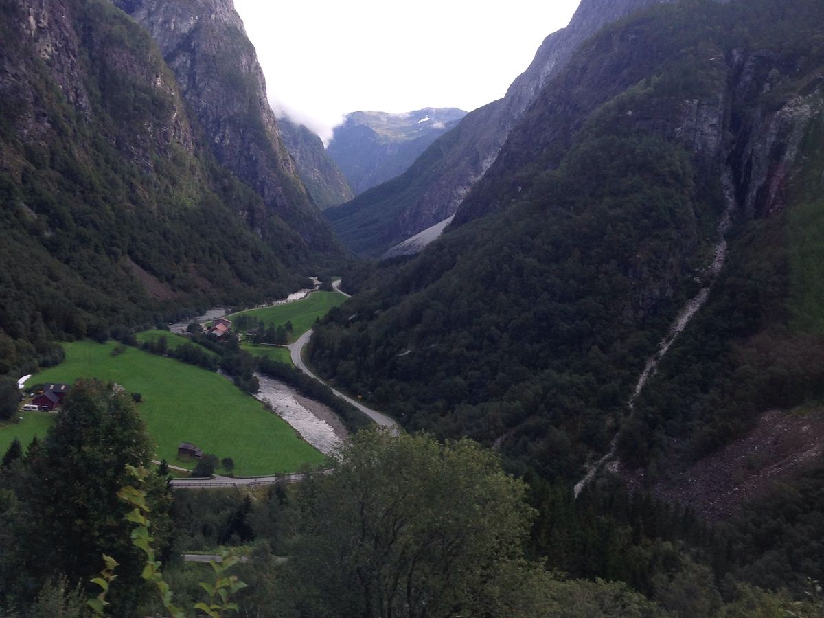 年中雨が降っているようなところだと聞いていましたが、そこそこに晴れ間もあって、雄大な景色が堪能できました。最初のボートの移動の際も景色は良かったですが、フラムからミューダールまでの鉄道列車の二時間の車窓からの景色が素晴らしいです。ボート、鉄道とチケットの組み合わせを先行予約することで一年で最も込み合う時期をうまく旅行できました。バウチャーには当日鉄道駅で切符に交換、と書いてありますが、前日の午後にベルゲン入りして観光案内書で事前に交換しておくこともできますので便利です。