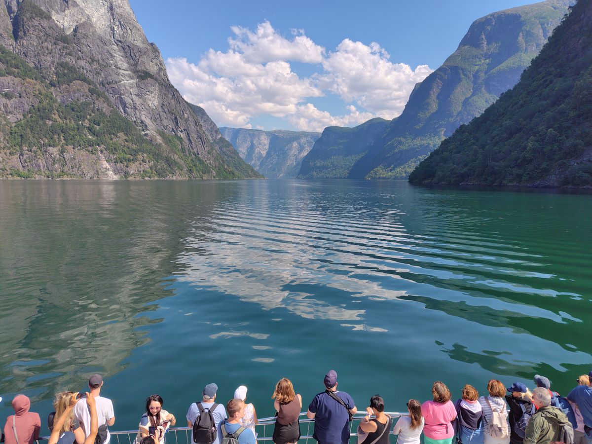 初めてのノルウェー旅行なので不安もありましたが、事前に送られてきた案内通りに行動すればスムーズにツアー参加できました。ベルゲン発着の列車は座席指定されていて安心でしたし、バスも何台も行列して待っていてツアー参加客が慌てずにいられました。フィヨルドクルーズとフロム鉄道は予想以上の景観で感激しました。料金は円安でとても高いですが、素晴らしい体験でした。