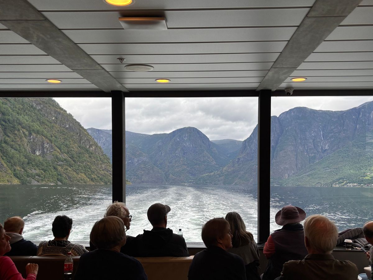 列車とフェリーからたっぷり絶景を楽しめました。フロムでも十分な時間があったので、ブレケフォッセンへのハイキングもできました。列車の乗り換えも簡単でしたが、フロム鉄道は、フロムから乗ってきてそのままフロムに戻る人たちですでに席の大半が埋まっていて、窓側とか左側・右側を選ぶ余地がなかったのが残念でした。空席を探して相席をお願いしました。