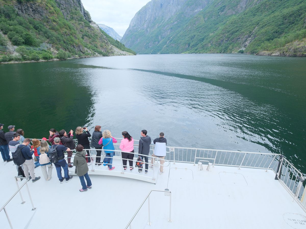 フロム到着を前にして、フィヨルドの眺めがより近く感じるあたりでは、船首の小さなデッキから迫力ある景色を楽しむことが出来ました。
